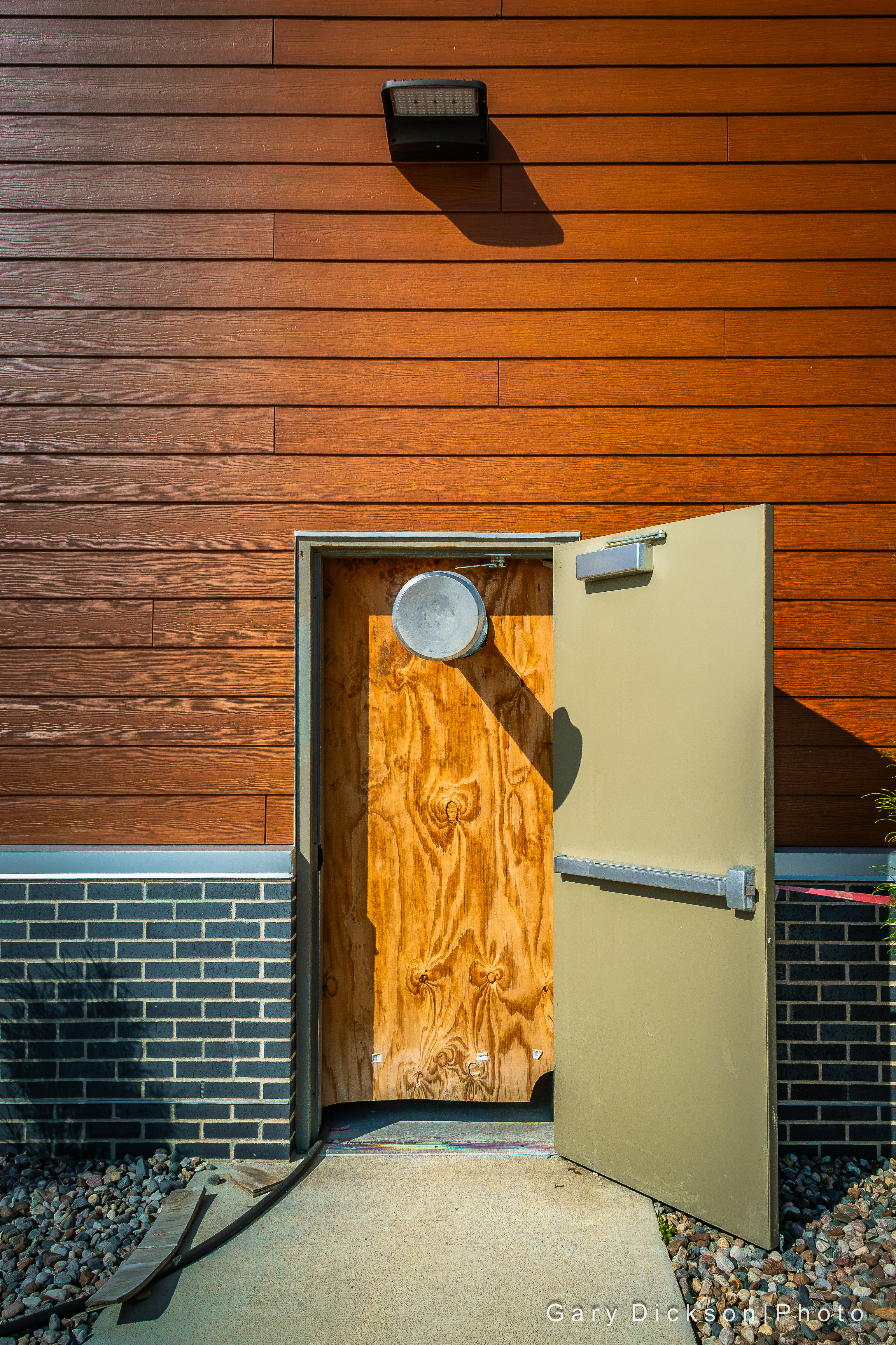 As I wandered around the perimeter of the property taking photos I noticed one of the doors was open and had electrical cords from one of the transformers running through it. So I decided to take a peek.