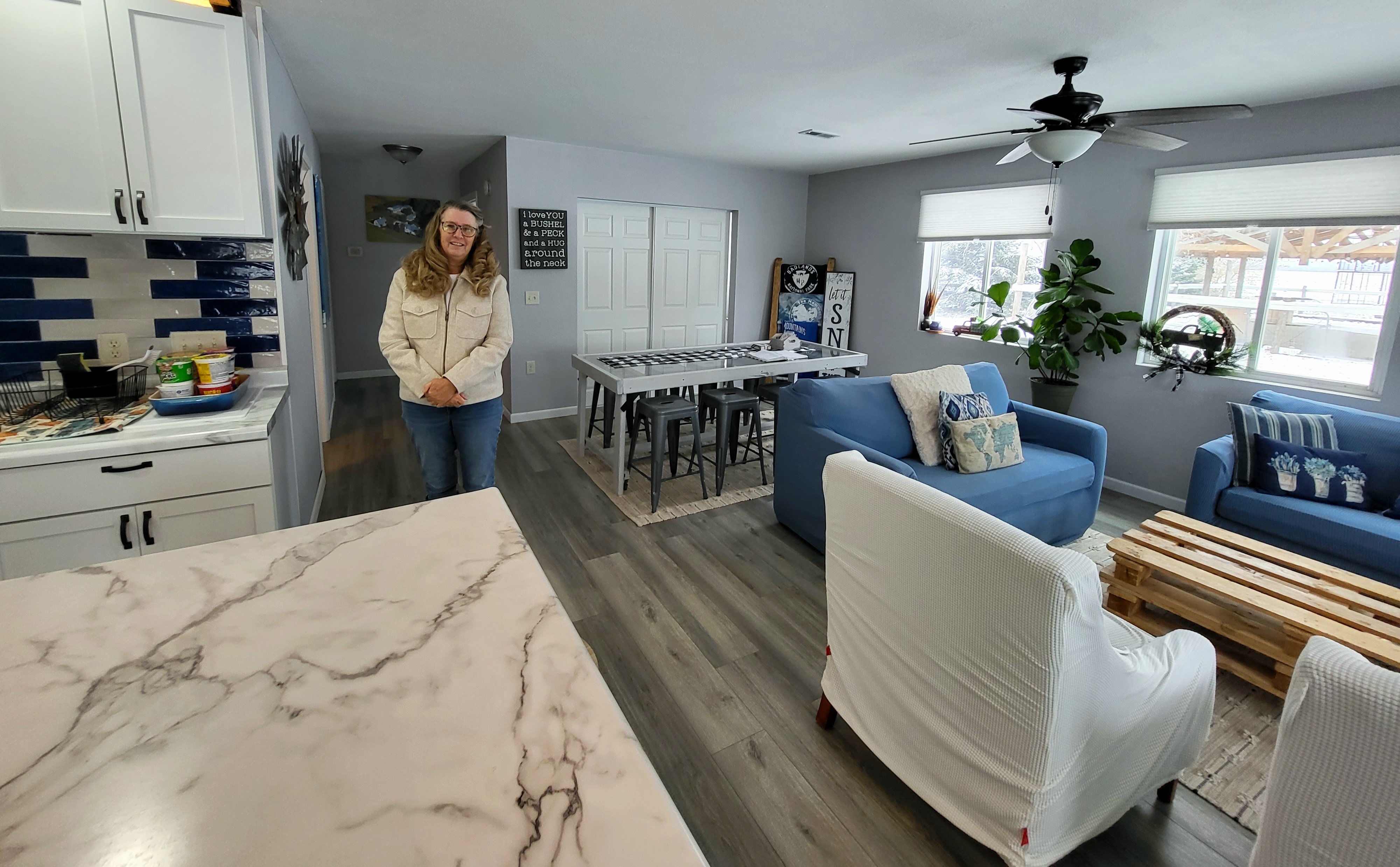 Jorgensen and her attorney, Mitch Peterson presented their ideas about the ranch which consists of a main house, lodge, 114-year-old barn that the owners rescued from being burned down and now has been turned into an event center, a guest house that can sleep eight people, a five-acre grove of trees, a large front lawn, a corncrib built in the early 1900s that has six hanging wicker chairs, a former chicken coop that’s been refurbished into a two bedroom tiny house with a kitchenette and living area and a covered open-air pavilion with benches lining the perimeter.