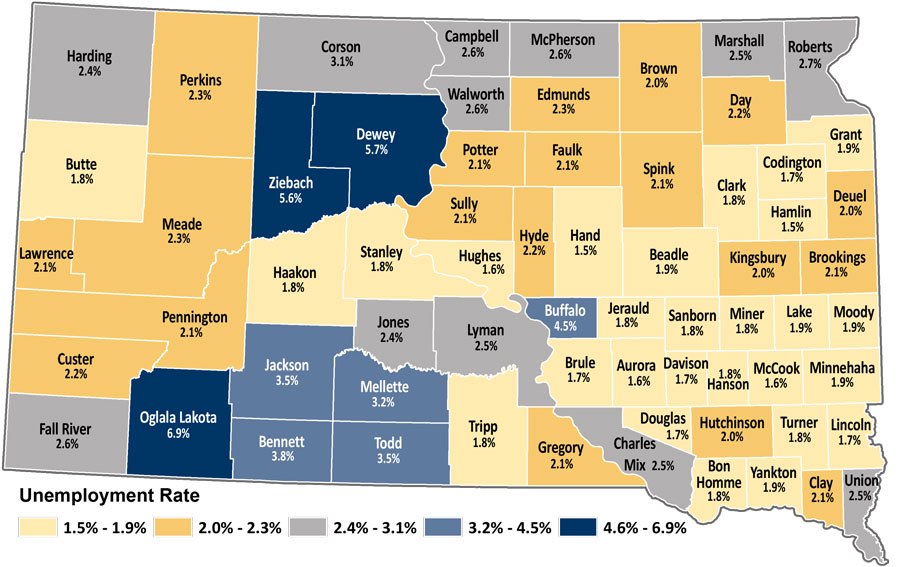 Here in Siouxland, unemployment ranged from a low of 1.7 percent in Lincoln County to a high of 2.5 percent in Union County.