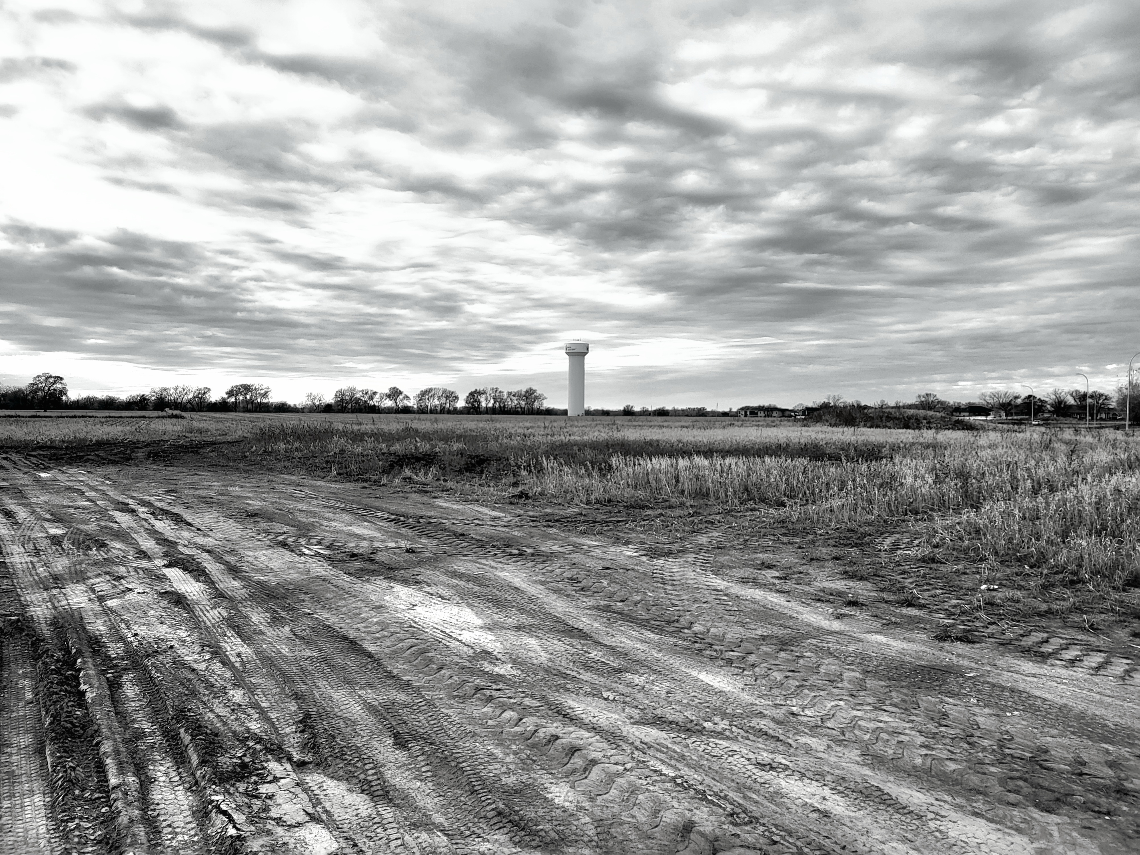 EDITOR’S NOTE: One person on NextDoor guessed the correct location of the photo. Bill Dailey from Wynstone inserted a satellite Google Map showing pretty much the exact point I took the photo. Although the map was an older one that didn’t have the same street signs and realtors’ signs it was correct. In other words, the place I took the picture from is known as Wrexham Road, a part of the Union Crossing Development. The view is looking west/northwest towards the North Sioux City water tower.