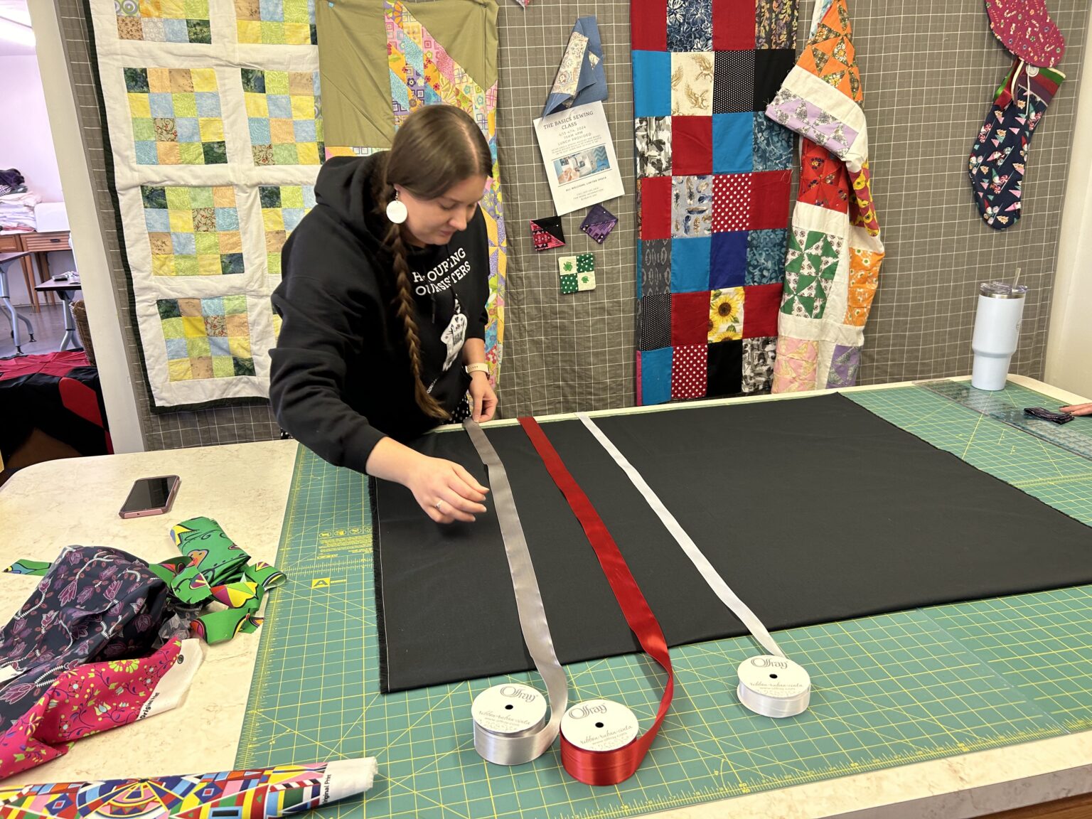 Meanwhile, at the Whiteclay Makerspace, Jessi Bean sings the praises of having a large, well-equipped facility to pursue her sewing. A teacher at a tribal school, Bean said the summer allows her more time to make ribbon skirts, and she jokes that her students give her a hard time if she’s not wearing one.
