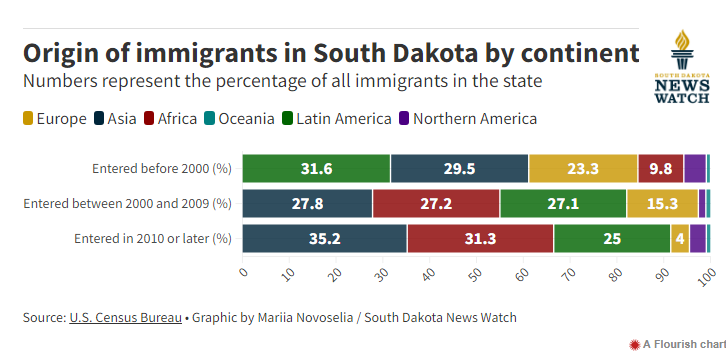 Zhang added that the increase in foreign-born population in South Dakota is an extension of the national trend. What’s notable, however, is where foreign-born residents come from, she said.